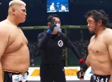 Professional japanese heavyweight MMA fighter Satoshi Kamiyama with nickname “Takakenshin” versus japanese leading rated professional athlete with debatable forms Hideki Sekine with label “Shrek”. Fight occurred in Japan