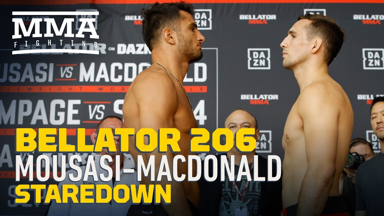 At the Bellator 206 weigh-ins Friday, Gegard Mousasi and Rory MacDonald encounter off for the final time before their Bellator Mixed Martial Arts middleweight title fight Saturday in San Jose.