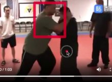 A Kung Fu Master demonstrates a bicep stress factor strategy that’s apparently meant to respond to the Muay Thai Clinch (aka Muay Thai Plum), so a Western guy