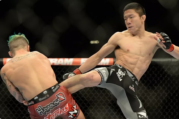 Former Shooto champ, Kyoji Horiguchi, will attempt to steal the strap from Ultimate Fighting Championship (UFC) flyweight kingpin, Demetrious Johnson, this Saturday night (April 25, 2015) inside the Bell Centre in Montreal, Quebec, Canada. After demolishing Dustin Pague with ground strikes in his Octagon debut, the Japanese fighter dropped down to flyweight. That proved to be a good decision, as the Karateka has been able to win three straight fights without much difficulty, including a knockout win over Jon Delos Reyes.